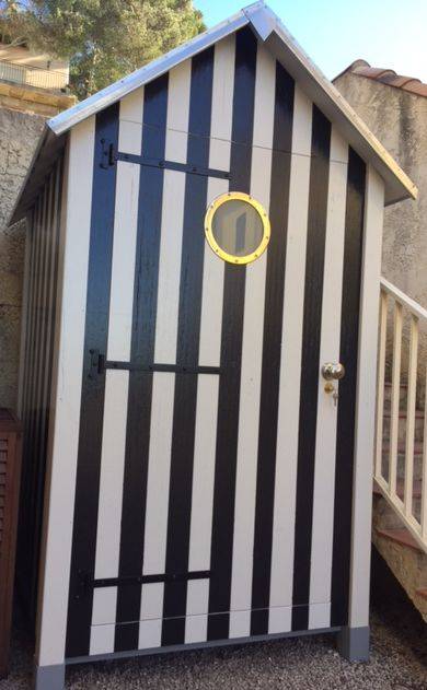 Réalisée en bois contreplaqué CTBX Hydro de 18 mm, votre cabine de plage en bois en kit est prête à peindre, le bois Hydro utilisé est adapté pour l’extérieur afin de résister aux intempéries.