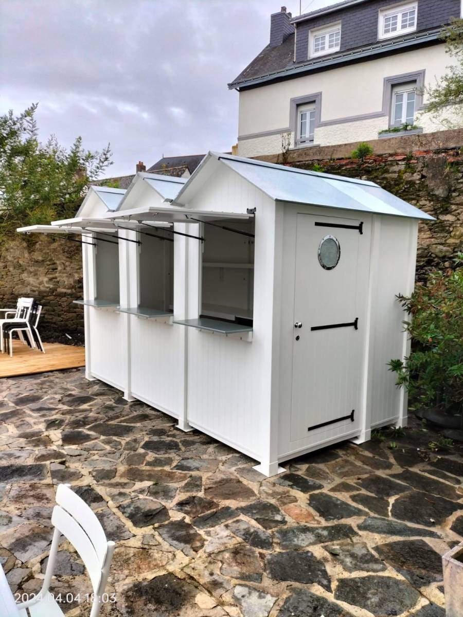 Nos cabines de plage en bois sont conçues pour s’adapter à tous vos besoins : local technique, bar à cocktails, bar à glace, zone de snacking, stockage, local pour vélos, et bien plus encore. Avec son look paillotte/cabine de plage, elle apportera une touche d’élégance et d’originalité à vos extérieurs.