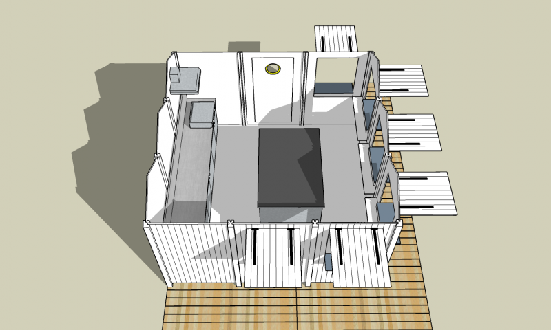 - Cabine en bois exotique (panneaux multiplis CTBX 18mm rainurés)