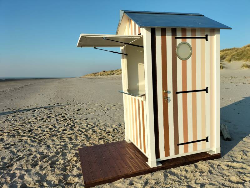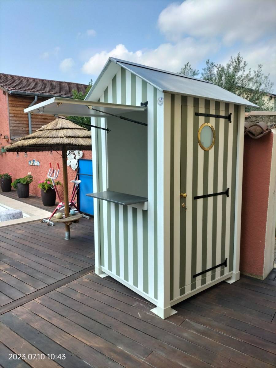 Hors saison, vous pourrez utiliser la cabine en bois pour entreposer du matériel tel que du mobilier de jardin (coussins, jeux extérieurs, etc.) la cabine de plage est entièrement étanche une fois le kiosque fermé.