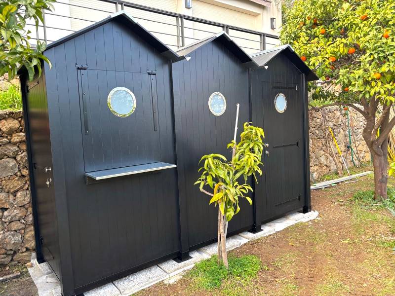 Si vous recherchez une cabine de plage en bois polyvalente pour vos repas en extérieur, pour stocker votre mobilier d'été ou bien vos équipements de sport (vélo, paddle, ..) la cabine triple de 5m² peut répondre à vos besoins.