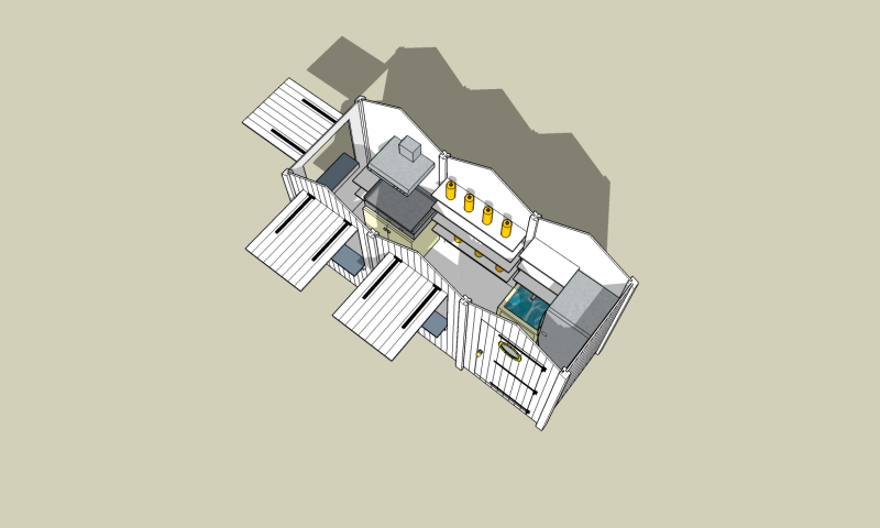 - Cabine en bois exotique (panneaux multiplis CTBX 18mm rainurés)