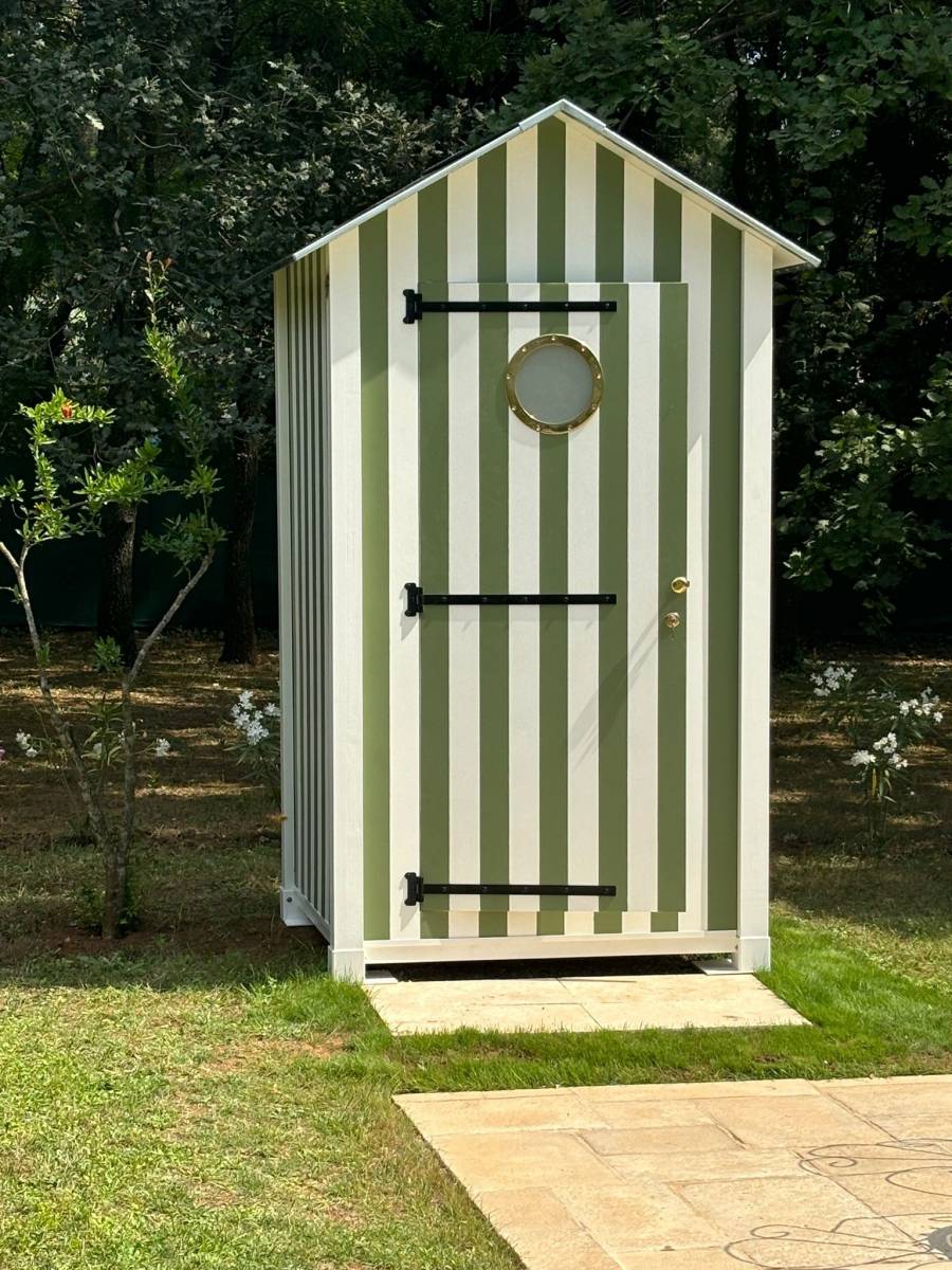 Choisissez la couleur de votre cabine (rayures ou unie), le nombre et la disposition des ouvertures, l'aménagement intérieur, les finitions laiton ou chromé, le sol souple, les accessoires de décoration….